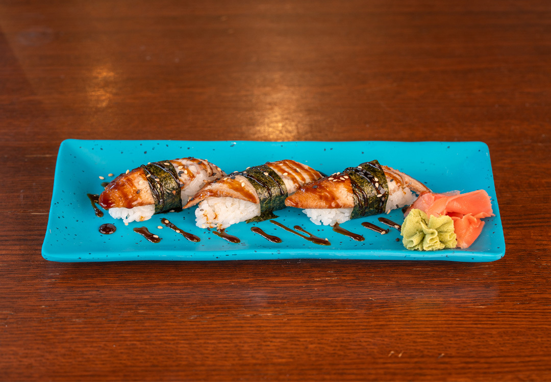 Tempura crunch, avocado, seaweed, sushi rice; choice of tuna, salmon, shrimp, yellowtail 9.49
