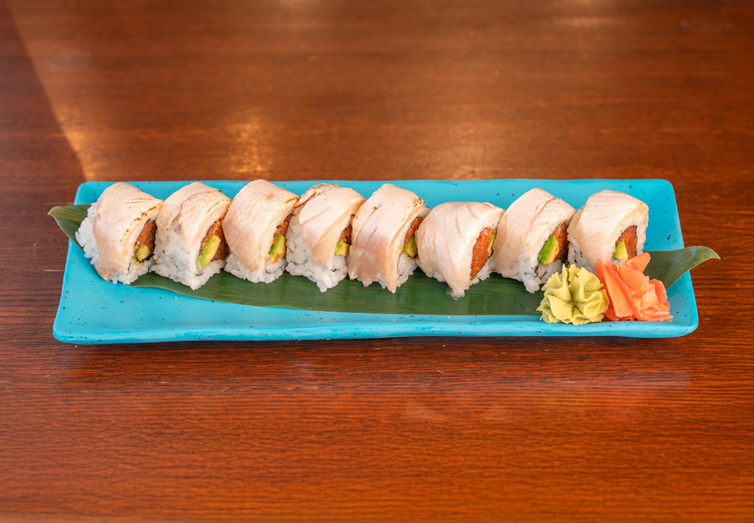 Avocado, cucumber, seaweed, sushi rice, sesame seeds, spicy mayo; choice of tuna, salmon, shrimp, yellowtail 9.49